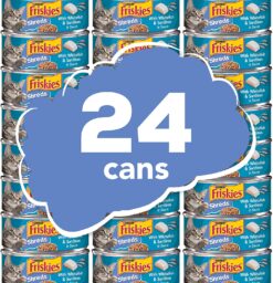 - Twenty Four (24) 5.5 Oz. Can Purina Friskies Shreds With Whitefish & Sardines In Sauce Wet Cat Food