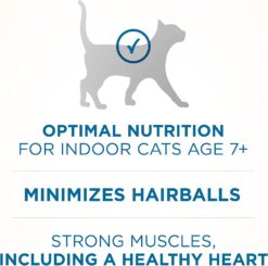 This hairball control cat food is made by a veterinarian-recommended brand and proudly produced at Purina-owned U.S. facilities with no artificial flavors or preservatives. - One (1) 16 lb. Bag – Purina ONE High Protein, Natural Senior Dry Cat Food, Indoor Advantage Senior+