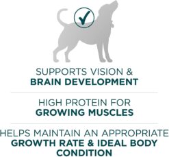 Start your large breed puppy’s life with you off on the right paw with Purina ONE SmartBlend Natural Large Breed Puppy Formula dry dog food. Our puppy dog food kibble helps your growing pup maintain his ideal body condition, support his growing muscles — including a healthy heart — and give him the nutrition he needs to live a healthy life with you. Real chicken is the #1 ingredient, and this high-protein puppy food helps support his strong muscles and heart. Plus, with rice for his delicate stomach, our natural puppy food with added vitamins, minerals and nutrients is also easily digestible. Natural sources of glucosamine in every serving help support his growing joints, and it has no artificial flavors or preservatives along with 0% fillers and 100% nutrition. With a combo of protein-rich, tender and meaty morsels and crunchy puppy kibble, Purina ONE large breed puppy food delivers a taste and texture he’s sure to love, all in a recipe crafted by a veterinarian-recommended brand.