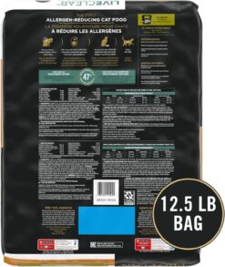 - LIVECLEAR is the first cat food line with the power to reduce the major allergen in cat hair and dander by neutralizing Fel D1, a common allergen in cat saliva, with a key protein from eggs