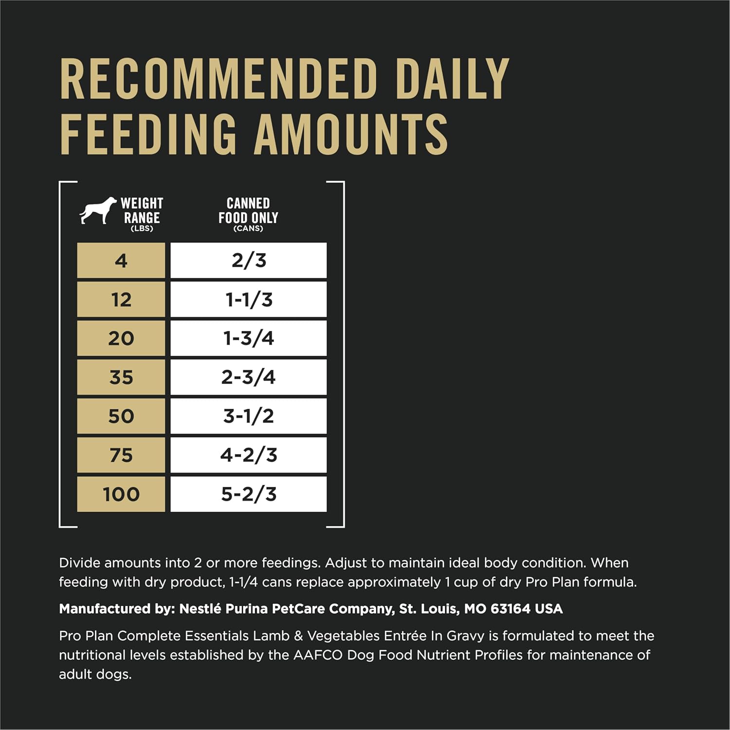 Purina Pro Plan Complete Essentials Lamb and Vegetables Entree in Wet Dog Food Gravy – (Pack of 12) 13 oz. Cans