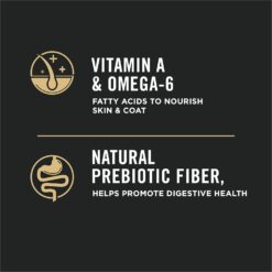 - Vitamin A and omega-6 fatty acids to nourish skin and coat. Natural prebiotic fiber for dogs helps deliver digestive support