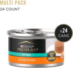 - Twenty-Four (24) 3 oz. Pull-Top Cans – Purina Pro Plan Grain Free Pate Wet Kitten Food, Chicken Entree