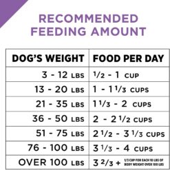 Provide adequate fresh water in a clean container daily. For your pet’s health, see your veterinarian regularly.We recommend that you keep your dog in ideal body condition and not allow your dog to become overweight. The exact amount of food your dog requires will need to be adjusted according to age, activity and environment. But a good place to start is with these guidelines for an average, active, adult dog fed once daily.
