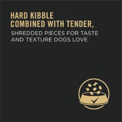 Hard kibble combined with tender, shredded pieces for taste and texture dogs love