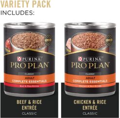- Twelve (12) 13 oz. Cans – Purina Pro Plan Pate Wet Dog Food Variety Pack, COMPLETE ESSENTIALS Classic Entrees