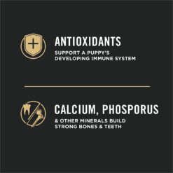 Puppies start to nibble solid foods at 3 – 4 weeks of age. Keep moistened Pro Plan available at all times. Allow your puppy to eat at will until fully weaned (6 – 8 weeks). After weaning, Pro Plan can be fed moistened or dry. For best results, develop a regular feeding schedule such as three small meals a day for younger puppies. You can gradually reduce to one feeding in the morning and one in the evening as your puppy ages. The routine should not vary. As puppies near adulthood, their calorie needs may drop, and your puppy may begin leaving some food in the bowl. Don’t misinterpret this as an indication of dislike for the food. Instead, begin offering less so your puppy doesn’t overeat and stays in ideal body condition. Nestlé Purina Research indicates that avoiding overfeeding of puppies may help their development. Maintaining ideal body condition is key to encouraging proper growth in all puppies, especially large breeds. The indicated amounts are only a guideline. If your puppy becomes overweight, a reduction of your puppy’s daily food intake may be appropriate. You may wish to consult your veterinarian about a weight control program. FEEDING FOR REPRODUCTION Pro Plan provides the extra nutrition needed by reproducing females in stages of gestation and lactation. Food consumption may vary during gestation, so feed the amount needed to maintain the pregnant female’s ideal body condition. Food intake may double or even quadruple during lactation. MAKING THE SWITCH TO PRO PLAN Although you’ll be anxious to see the difference Pro Plan can make in your dog, please allow 7 – 10 days to ease the transition from your dog’s current food. Each day, simply feed a little less of the previous food and a little more Pro Plan until you’re feeding Pro Plan exclusively. This gradual transition will help avoid dietary upsets. Contains a source of live (viable) naturally occurring microorganisms. Provide adequate fresh water in a clean container daily. For your pet’s health, see your veterinarian regularly.