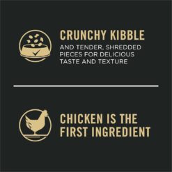 - Crunchy kibble combined with tender, shredded pieces for taste and texture dogs love