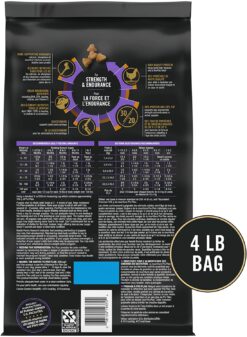 Purina high-protein dry dog food with 30% protein and 20% fat to support age-appropriate strength and endurance in active puppies.