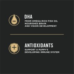 DHA from omega-rich fish oil in our salmon puppy food supports brain and vision development, and antioxidants help maintain your puppy’s developing immune system - DHA for brain and vision development