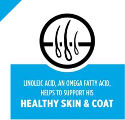 - Linoleic acid, an omega fatty acid, helps to support his healthy skin and coat
