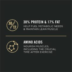 Purina Sport dog food with 30 percent protein and 17 percent fat to help fuel metabolic needs and maintain lean muscle