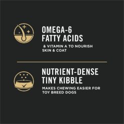 Small and toy breed dogs don’t just look distinctive in size – they benefit from nutrition that supports their unique needs. That’s why Pro Plan Toy Breed and Small Breed formulas offer specialized benefits for highly active small dogs. Like high protein, a smaller, easier-to-chew kibble size, and live probiotics for digestive and immune health. Pro Plan Small Breed and Toy Breed formulas are outstanding daily nutrition and great-tasting formulas small dogs love. Keep your toy-breed dog’s happy during meals with Purina Pro Plan Brand Dog Food Toy Breed Chicken & Rice Formula adult dry dog food. Real chicken as the first ingredient helps provide protein, which is an essential building block, while the optimal protein-to-fat ratio helps maintain an ideal body condition. Fortified with guaranteed live probiotics for digestive and immune health, this mouthwatering toy breed dog food formula features bits of bite-sized kibble that are easy for your toy breed to chew and a delicious flavor that makes meals fun. Every ingredient in this super premium dog dry food formula is carefully chosen for a specific nutritional or functional purpose, giving your canine companion a high-quality meal option that keeps you both content. Formulated for adult toy-breed dogs weighing under 10 pounds, this Purina Pro Plan dry dog food offers specialized nutrition created with your dog in mind.