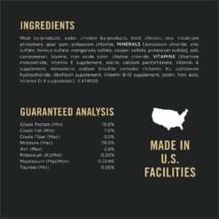 This urinary tract wet cat food pate is proudly manufactured in Purina-owned, U.S. facilities with no artificial preservatives.