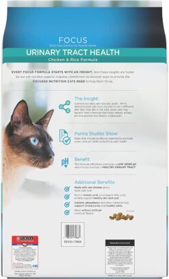 A healthy urinary tract is key to your cat’s overall health. Support it with the high-quality, specialized nutrition of Pro Plan Urinary Tract Health wet or dry cat food formulas. Made with real meat, poultry or fish and without artificial colors or flavors, it’s the great-tasting, targeted nutrition your cat needs to thrive. Give your cat the specialized nutrition she needs with Purina Pro Plan FOCUS Urinary Tract Health Formula adult dry cat food 16-pound bag. This formula is designed to help maintain her urinary tract health by reducing urinary pH and providing her with low dietary magnesium. Linoleic acid, an omega-6 fatty acid, in every serving works to help maintain her healthy skin and luxurious coat so that she can hold herself with confidence throughout your home. This dry cat food recipe is made with real chicken and a taste cats love, and every high-quality ingredient that goes into this super-premium cat food is carefully selected for a specific purpose, so you feel good about the food you put in her dish every day. Give your cat the nutrition she needs to thrive and help to satisfy her cravings with the deliciousness she gets in each serving of Purina Pro Plan FOCUS Urinary Tract Health Formula adult dry cat food.