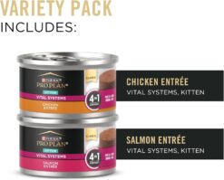 Purina Pro Plan Vital Systems Chicken and Salmon Entree Wet Kitten Food Variety Pack 4-in-1 Muscles, Brain, Immune and Bone – (Pack of 24) 3 oz. Cans
