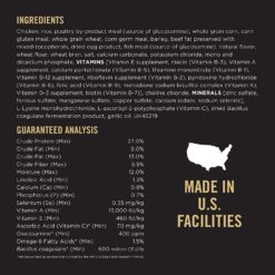 New: Chicken, Rice, Poultry By-Product Meal, Whole Grain Corn, Corn Gluten Meal, Whole Grain Wheat, Corn Germ Meal, Barley, Beef Fat Preserved With Mixed-Tocopherols, Dried Egg Product, Fish Meal, Natural Flavor, Wheat Flour, Wheat Bran, Salt, Calcium Carbonate, Potassium Chloride, Mono And Dicalcium Phosphate, Vitamins [Vitamin E Supplement, Niacin (Vitamin B-3), Vitamin A Supplement, Calcium Pantothenate (Vitamin B-5), Thiamine Mononitrate (Vitamin B-1), Vitamin B-12 Supplement, Riboflavin Supplement (Vitamin B-2), Pyridoxine Hydrochloride (Vitamin B-6), Folic Acid (Vitamin B-9), Menadione Sodium Bisulfite Complex (Vitamin K), Vitamin D-3 Supplement, Biotin (Vitamin B-7)], Choline Chloride, Minerals [Zinc Sulfate, Ferrous Sulfate, Manganese Sulfate, Copper Sulfate, Calcium Iodate, Sodium Selenite], L-Lysine Monohydrochloride, L-Ascorbyl-2-Polyphosphate (Vitamin C), Dried Bacillus Coagulans Fermentation Product, Garlic Oil. U446219.
