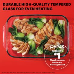 Pyrex Basics 3-Pack Glass Baking Dish Set (2QT, 3QT, 4.8QT) With BPA-Free Lids, Rectangular Glass Bakeware, Dishwasher, Microwave, Freezer & Pre-Heated Oven Safe
