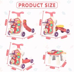 - 5 in 1 new design to meet different age stages: listening, playing, standing, walking and riding
