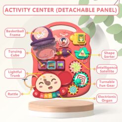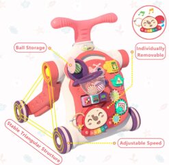 - [Detachable Entertainment Table]: This removable play panel features basketball frame with 3 balls, 3 shape recognition blocks, 3 colorful spinning rollers, removable piano keyboard, this new design panel is very useful to help baby recognize colors and shapes, developing sense of rhythm, encouraging your baby’s creativity.