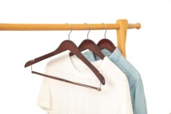 - Color: Mahogany Finish Chrome 360-degree swivel Hook will fit all standard closet rods