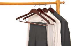 Quality Hangers Wooden Hangers Beautiful Sturdy Suit Coat Hangers with Locking Bar Chrome Hooks (50)