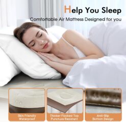 - 【Top Flocked Material and Thickened PVC】The top part of the air mattress is finished with premier silky soft flocking microfiber material to prevent air leaks and collapsing. Designed with waterproof and puncture-resistant PVC, the bottom has a non-slip strip that prevents shifting and reduces noise, providing excellent sleep experiences to our customers