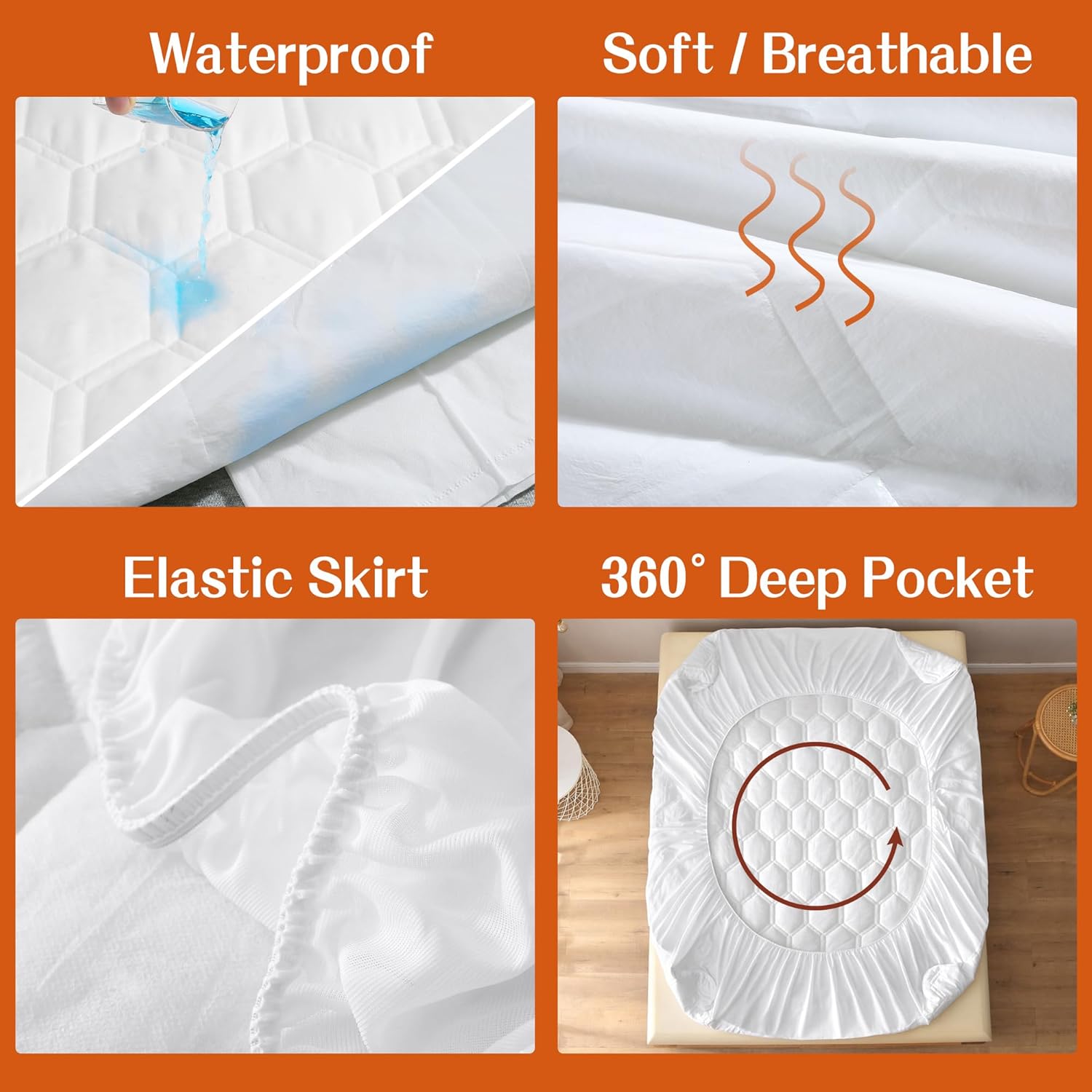 - Absolute Waterproofing: Our mattress cover queen provides a clean and comfortable sleeping space by blocking liquids and moisture. With its advanced double TPU membrane, it repels stains, bedwetting, sweat, and drinks, keeping your mattress clean and fresh.
