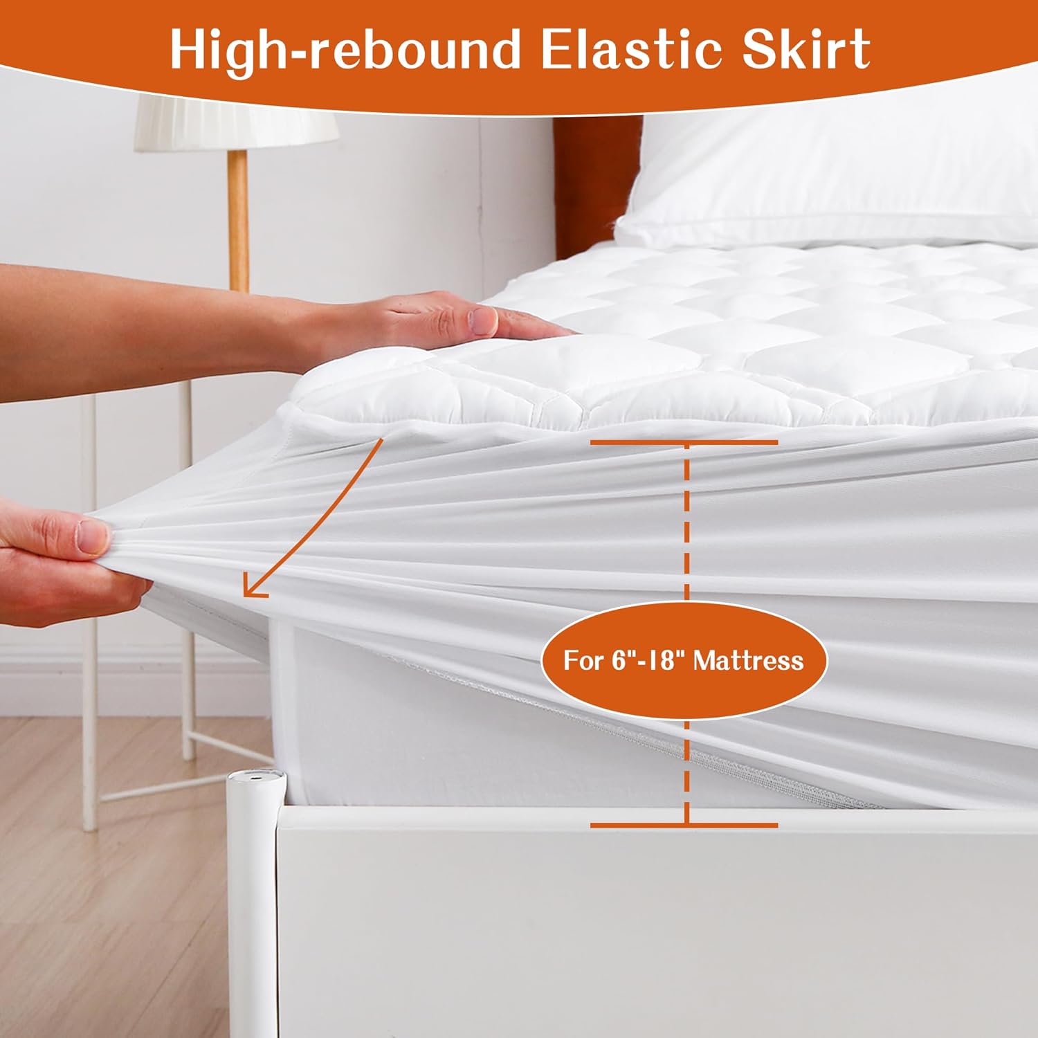 - 360° Protection with Enhanced Deep Pockets: With its high-rebound elastic skirt, the GOONIK mattress pad queen size ensures a perfect fit for most mattresses up to 18 inches deep, making it a versatile and practical choice for your bedding needs.