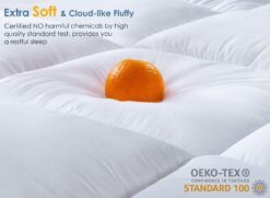 - Unmatched Softness: Indulge in sleeping on clouds feel with extra thick snow down alternative filling, which creates a soft and cozy surface that relaxes your body, alleviates pressure points, particularly on back, shoulders, and hips. Enjoy a more restful sleep with significantly improved sleep quality.