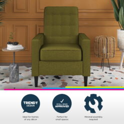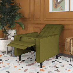 - Updated mid-century modern styled recliner creates a luxury space in your living room or home office with its linear profile and backrest button tufted detailing.