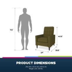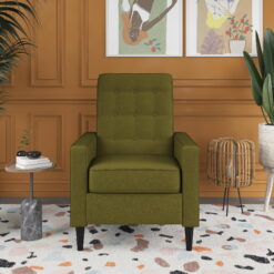 Queer Eye Wimberly Pushback Recliner, Mid-Century Modern Accent Chair, Olive Green Linen