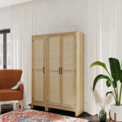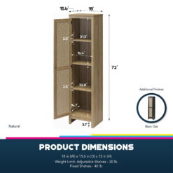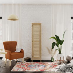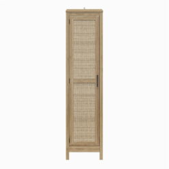 Queer Eye Wimberly Tall 1 Door Cabinet, Natural with Faux Rattan