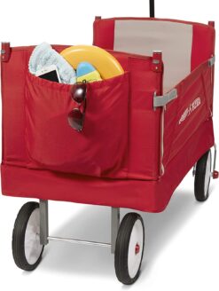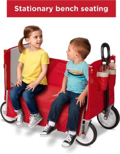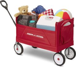 Radio Flyer’s 3-in-1 EZ Fold Wagon with Canopy is designed as a full sized wagon for kids that folds compactly and offers 3 different modes: 2 kids riding, flatbed hauling, and bench seating.