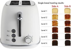 - ADD SIMPLE RAE DUNN STYLE TO YOUR HOME: Accessorize your kitchen and countertop with this retro toaster featuring labels in Rae Dunn’s signature font. Let your toaster tell its story – this rounded toaster is labeled “TOAST.” Add simple style while toasting bread and bagels, making your morning that much brighter.