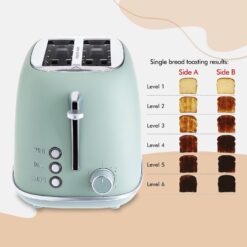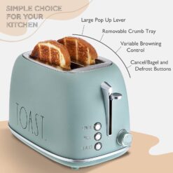Rae Dunn Retro Rounded Bread Toaster, 2 Slice Stainless Steel Toaster with Removable Crumb Tray, Wide Slot with 6 Browning Levels, Bagel, Defrost and Cancel Options (Green)