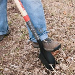 The Razor-Back drain spade is designed for digging narrow trenches and cleaning out previously-dug ditches. It is designed with a narrow, heavy-gauge closed blade, so you can also use this tool to transplant live trees and shrubs. The forward turned-step provides secure foot placement. It features a closed-back steel blade to prevent dirt buildup. This shovel also includes a 9 in. socket and a 48 in. ash wood handle, a long-reaching handle to reduce back pain and muscle fatigue while digging in tight spaces.