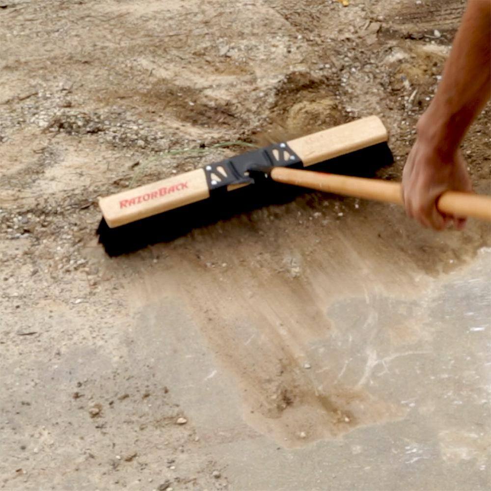 - 24 in. broom head width with 3 in. coarse bristles for sweeping debris on rough surfaces