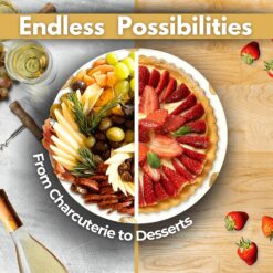 - Dimensions – This cake & food stand weighs a sturdy 4 pounds. It features a 12-inch diameter and stands 4.5 inches tall, providing ample space for displaying cakes and desserts. The base is matte gold & measuring 3.5 inches wide