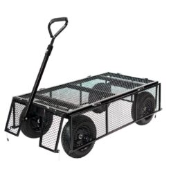 This utility cart is ideal for plants, tools and supplies around the yard, garden or greenhouse. The pneumatic tires, easy steering mechanism and foam rubber grip aid in maneuvering. This multi-purpose Utility cart can hold up to 1000 lbs.
