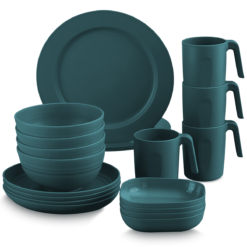 ReaNea Plastic Dinnerware Set of 20 Pieces, Unbreakable And Reusable Light Weight Plates Mugs Bowls Dishes Easy to Carry And Clean Microwave Safe BPA Free Dishwasher Safe Service For 4 (Dark Green) The ReaNea Plastic product are made of food safe grade material, They are BPA free. Perfect for daily use, camping, travel, pinic, farm work. They are light weight, unbreakable and easy to carry. It is a perfect gift for friends, mother, workmate, children.