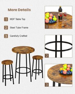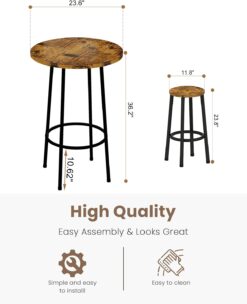 - Super Sturdy & Stable Construction – 3 Piece Pub Dining Set: This 23” round pub table set is made of premium MDF and sturdy metal frame, which is corrosion-resistant and durable for a long lifespan. The bar table made of thick board and thick metal which ensures stability and durability. The legs are super stable on the floor, with no wobbling issue at all. The weight capacity of the stool is up to 250lbs.