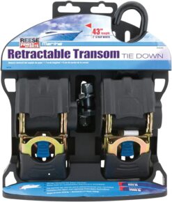 Reese Powersports 2060300 Retractable Transom Tie Down, 2 Inch x 43 Inch, 833 lbs. working load limit and 2,500 lbs. break strength, 2 pack.