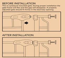 The gate is attractive, simple to use and adjustable to accommodate door openings between 30”-42”. To make gate installation a breeze, pressure mount the gate with the included rubberized tension knobs or use the included hardware to attach the gate to your wall.