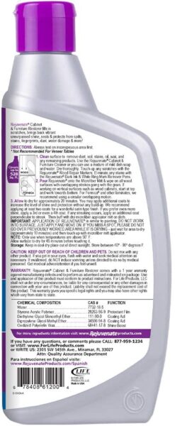 - Rejuvenate Cabinet & Furniture Restorer Fills in Scratches – Seals and Protects Cabinetry, Furniture, Wall Paneling – 13 Oz.