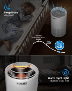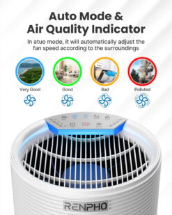 - REAL-TIME AIR QUALITY DISPLAY: Renpho pollution sensor Imported from South Korea communicates indoor air quality by changing the color of LED in real-time, While auto mode automatically optimizes the speed setting 1 through 4.