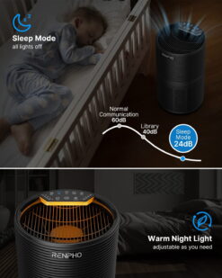It is very quiet at sleep mode with only 26db, you can sleep in a restful and soothing bedroom in a dark environment. In addition, Using this HEPA air purifier can relieve allergies and asthma symptoms and make you feel relaxed all night.
