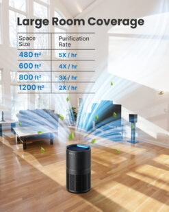 Features: Air Purifier for Home Large Room 480 Sq.ft, HEPA Filter Air Purifier, Air Cleaner, High Efficiency, 4 Fan Speeds, Quiet Sleep Mode, Energy Saving Auto Mode and Timer, Safe and Certified, 100% Ozone Free, Real-Time Air Quality Display, Smart Filter Change Reminder, Advanced 5-Stage Filtration System