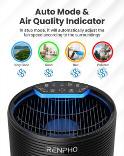 RENPHO’s pollution sensor Imported from South Korea communicates indoor air quality by changing the color of LED in real-time, While auto mode automatically optimizes the speed setting 1 through 4.