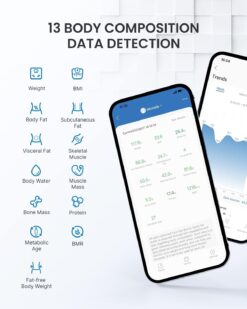 - 13 essential body measurements. Body weight shows on the digital scale, other body composition data including weight, BMI, body fat percentage stored in the app. Track everybody’s metrics change on Renpho app.